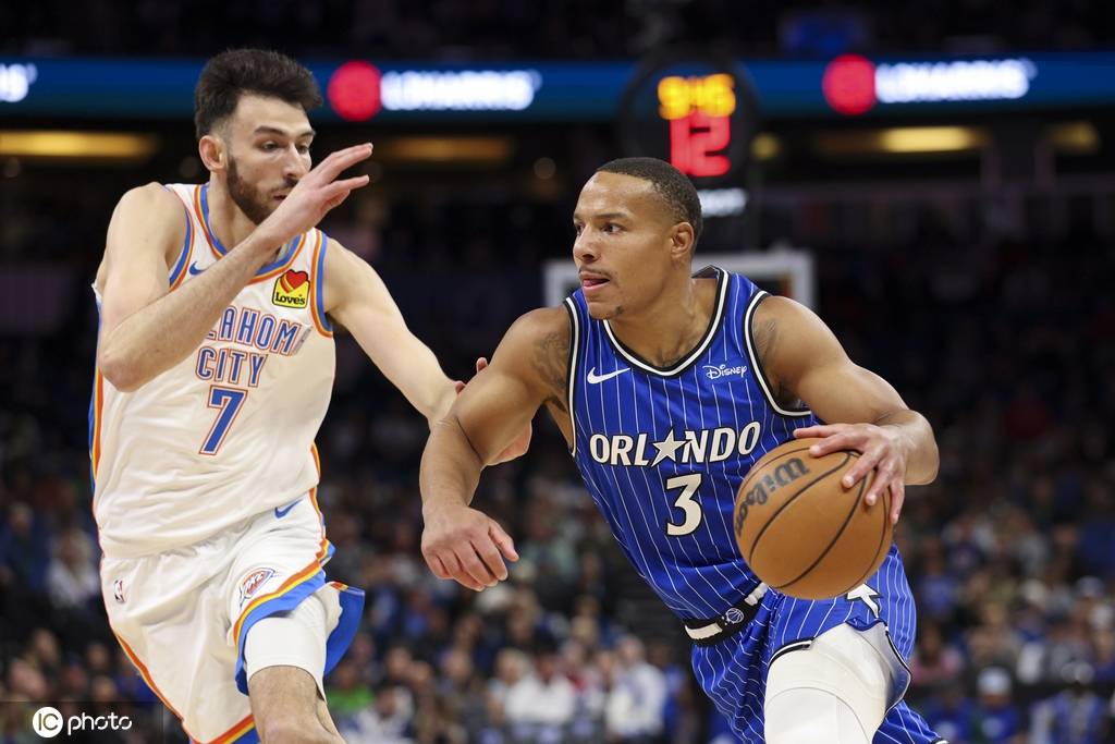 次节比赛魔术进攻陷入停滞,麦凯恩挑篮得分后,霍姆格伦连续三次完成空接扣篮,米切尔急停三分命中,雷霆打出一波15-2的攻击波,领先优势扩大到17分。瓦格纳两罚止血,萨格斯三分打破得分荒,杰文-卡特连续两记三分命中,班凯罗、席尔瓦连续冲击内线拿分,魔术很快把分差缩小到4分。多尔特三分命中后两罚全中,领先重回9分,卡特两罚全中,萨格斯和贝恩接连命中三分,半场结束时魔术50-51仅落后1分。